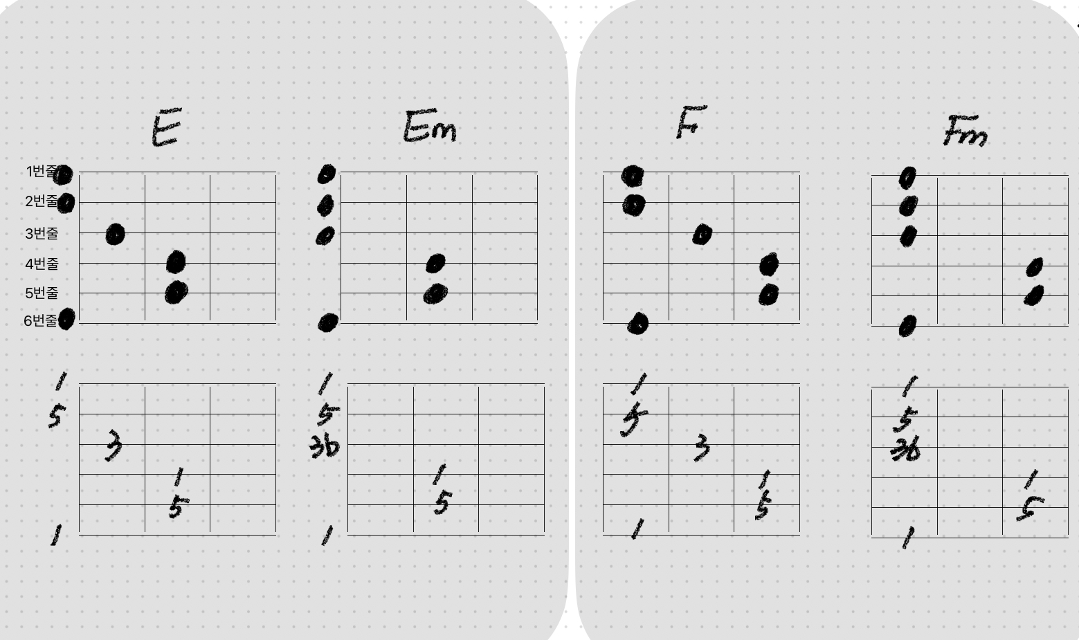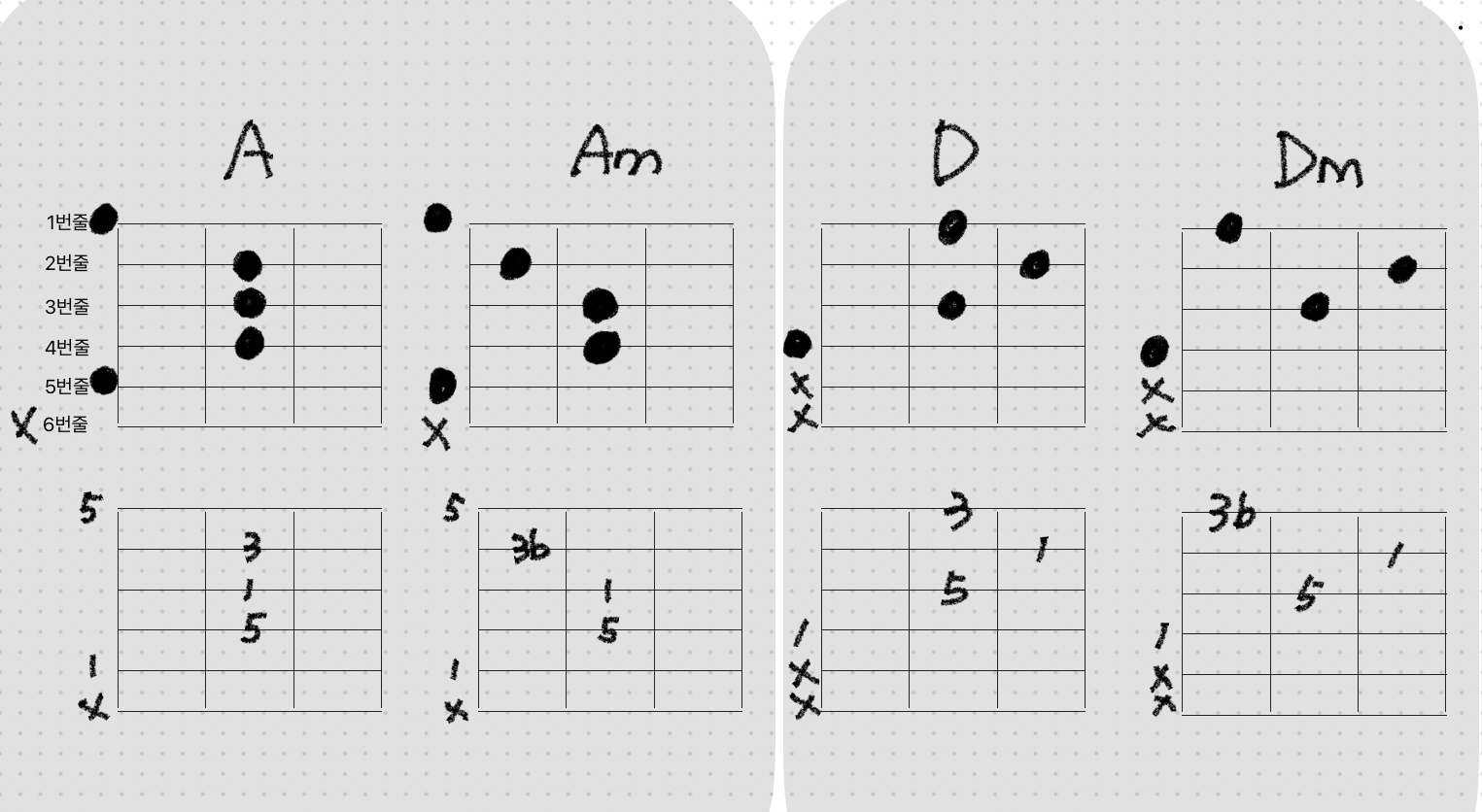 아래 그림과 같이 메이저 코드와 마이너 코드의 차이를 이해하시기 바랍니다.