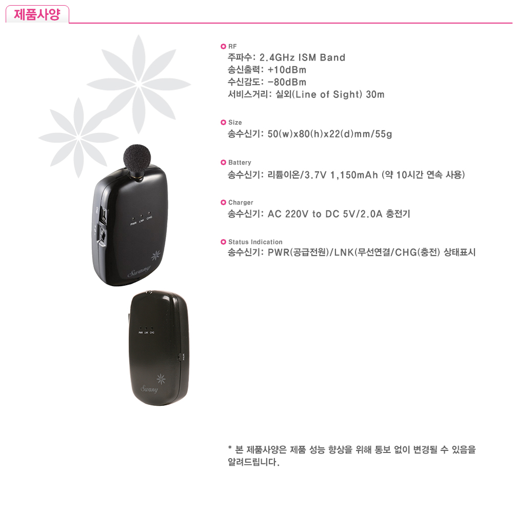 스와니 폰 송수신기 사양, 원격수업/방송용 무선마이크