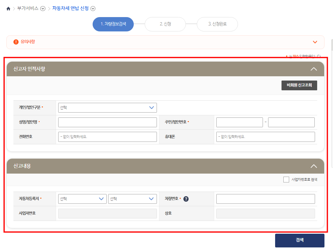 비회원으로 제3자 차량에 대한 연간 자동차세 납부를 신청할 수 있습니다.