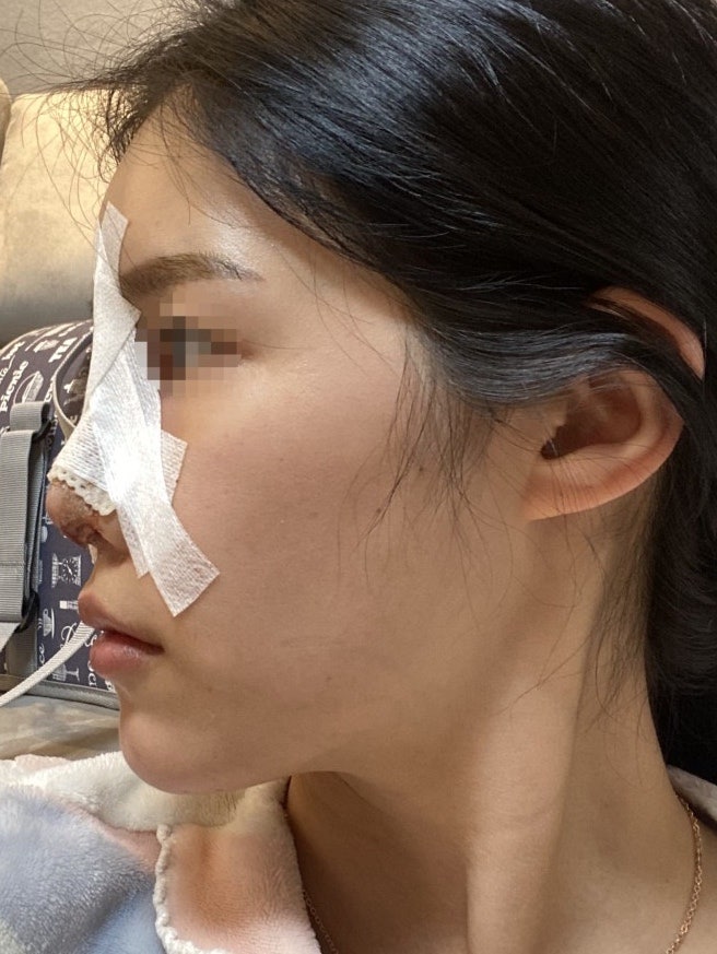 부목을 제거한 날 드디어 전체적인 모양을 보았는데 지금은 이마 한가운데가 약간 부어있는 느낌이 들어서 부목을 제거한 후 노란 멍이 많이 생길 것 같아요. 해체 + 머리 감기 + 세안 후 이동합니다. 7일 양쪽 콧구멍으로 숨을 쉴 수 있었지만 왼쪽이 막힌 느낌이 들어 코 안의 이물질을 빨리 빼내고 싶었다. 뜨거운 것을 먹으면 코가 막히기 시작합니다. 나비 부위에 노란 멍이 생기기 시작합니다. 웃거나 빨대로 물먹으면 코가 뻥 뚫리는 느낌 왼쪽 사진은 전, 오른쪽 사진은 후인데 오른쪽 사진 코끝은 거의 붓지 않고 초록! 코끝이 정말 내가 원하는 만큼은 아니고 자연스럽게 위로 올라가서 너무 만족!