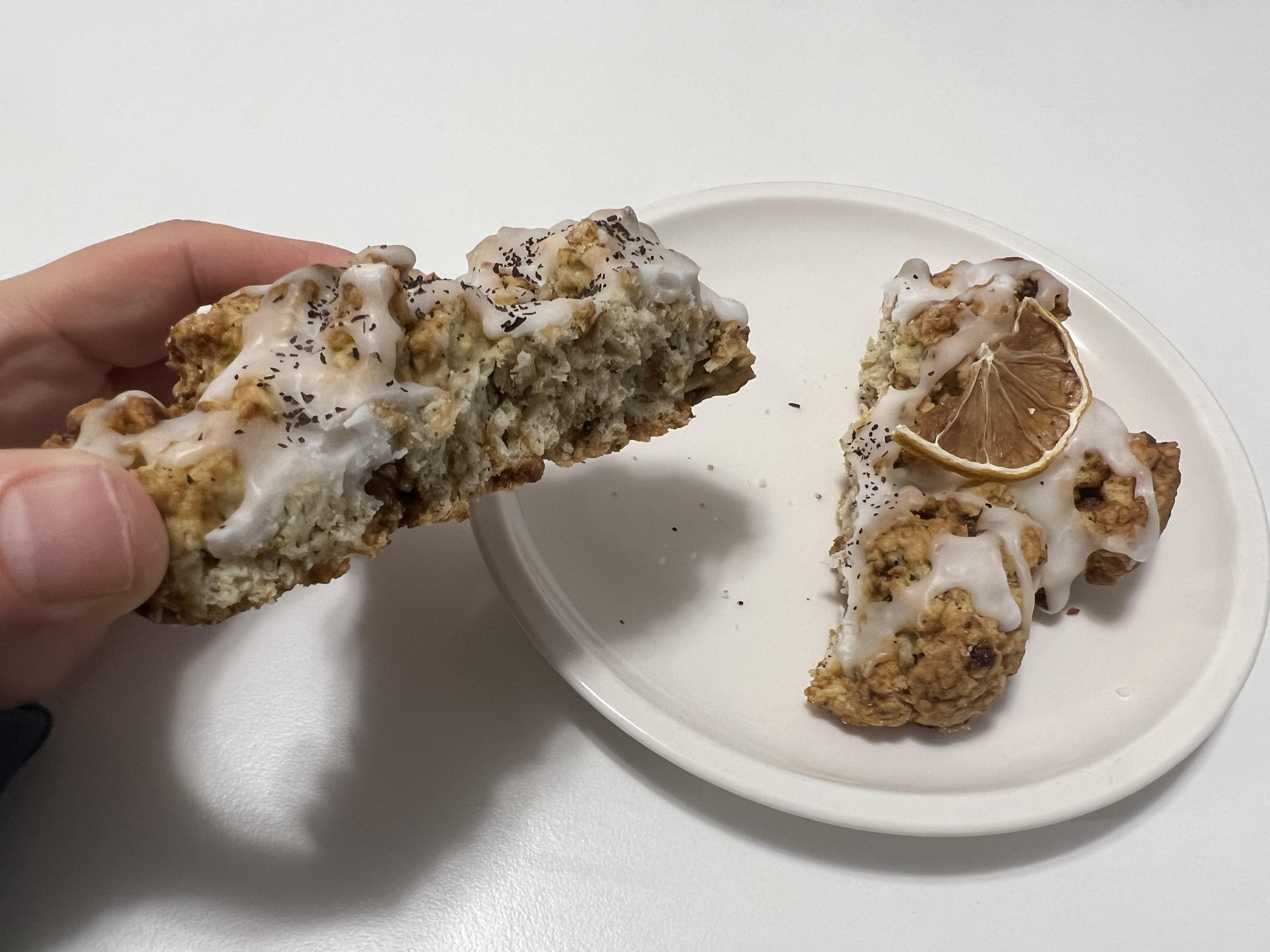 레몬 얼그레이 스콘과 스콘을 하나 더 주문했습니다.