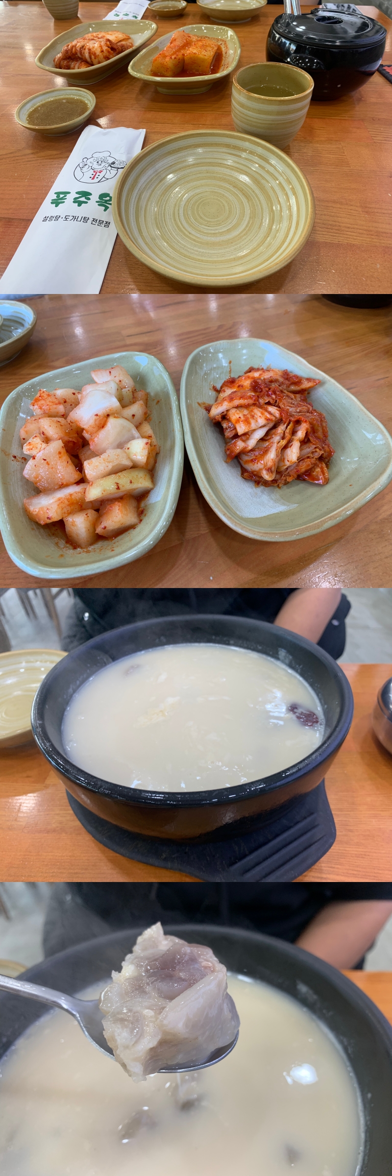 도가니탕이 처음 나올 때는 도가니가 없고 우유국만 있는 것 같은데 숟가락으로 저어보면 도가니가 꽤 많이 들어있습니다. 게다가 탕 뚝배기는 양이 꽤 많고 양도 많아서 여자 한명이 한그릇을 다 먹기에는 벅차다. 또 너무 많은 항아리에 기름기가 느껴져서 내장 전용 곰탕을 주문할 뻔하여 가족과 함께 항아리를 나눕니다. 내장을 먹을 수 없는 사람들에게는 안타까운 일이다. 너무 맛있어요…