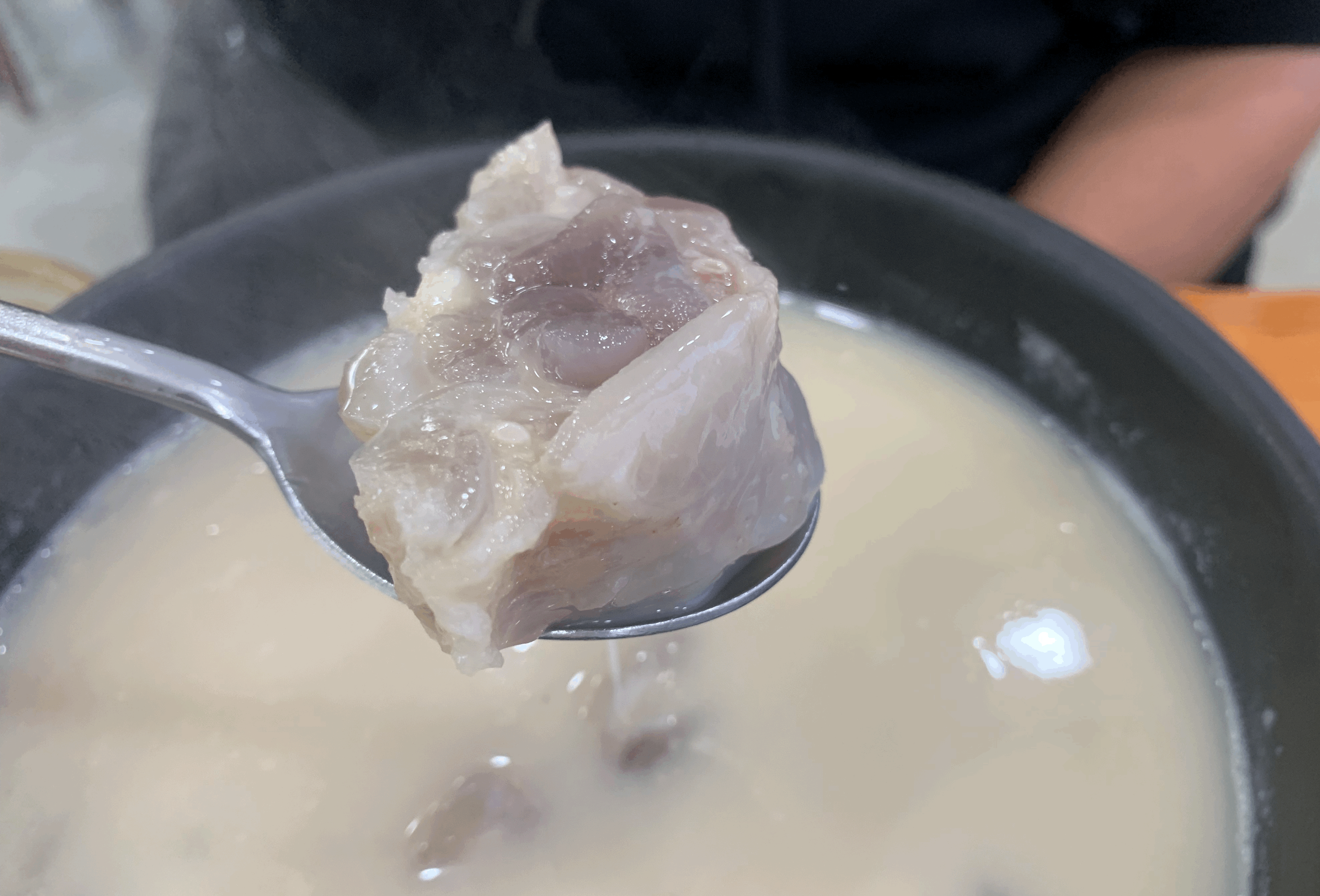 가격은 정말 비싸지만 이렇게 걸쭉한 국물은 아직 만나보지 못했고, 집에서 만들기도 불가능하다. 집에서 포장해 온 냉냄비 국물을 열어보니 국물이 아니고 거의 젤리 수준입니다. 끓이면 국물이 되고 정말 걸쭉한 느낌이 듭니다. 그리고 한 숟가락 떠먹으면 입술과 목이 끈적끈적한 느낌이 듭니다.