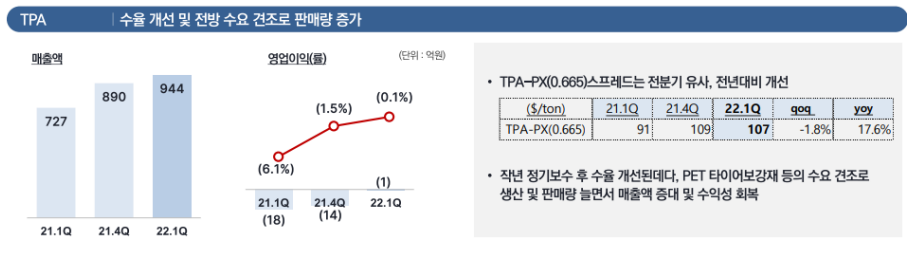 – 생산능력 5만톤, 가동률 40%, 분기 매출 115억원, 분기 영업이익 10억원 예상
