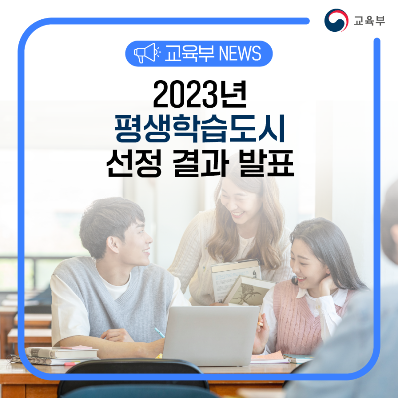 교육부(부총리 겸 교육부장관 이주호)와 국립평생교육원(원장 강대중)은 “2023년 지역평생교육 활성화 지원사업을 3월 6일(월)” 추진키로 했다. 또한, 기존 평생학습도시의 특성화를 지원하기 위해 평생학습도시(자립형) 17개소와 도·시(평생학습도시와 도평생학습진흥센터 연계형) 4개소를 선정·고시했다.